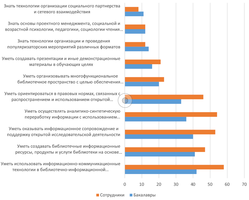 2. Рис. 2. Навыки и умения, развитию которых отдают предпочтение выпускники БИД и сотрудники библиотека | |