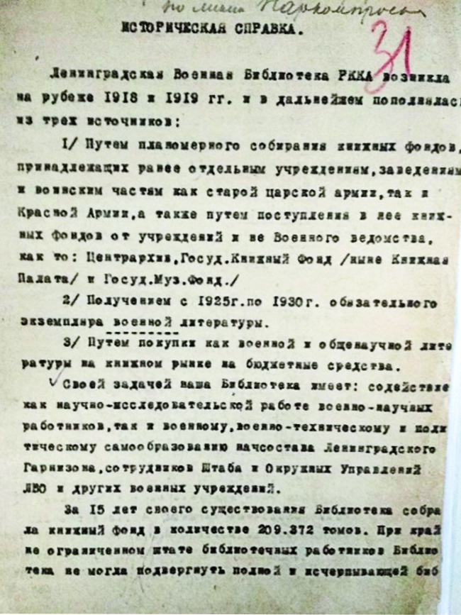 Petrova N.Yu. Leningrad Military Library of the Workers’ and Peasants’ Red Army in 1921–1936. Proceedings of SPSTL SB RAS. 2025;(1):22-30. (In Russ.) https://doi.org/10.20913/2618-7515-2025-1-22-30