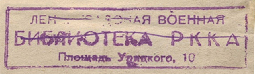 4. Рис. 4. Штамп Ленинградской военной библиотеки Рабоче-Крестьянской Красной Армии | |