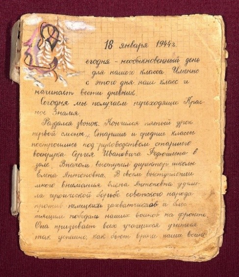 3. Рис. 3. Начало первой части Болотнинского дневника. Болотнинский районный историко-краеведческий музей. Дневник класса военной поры. Осн. фонд. Инв. № 2060, 1944–1945 годы
